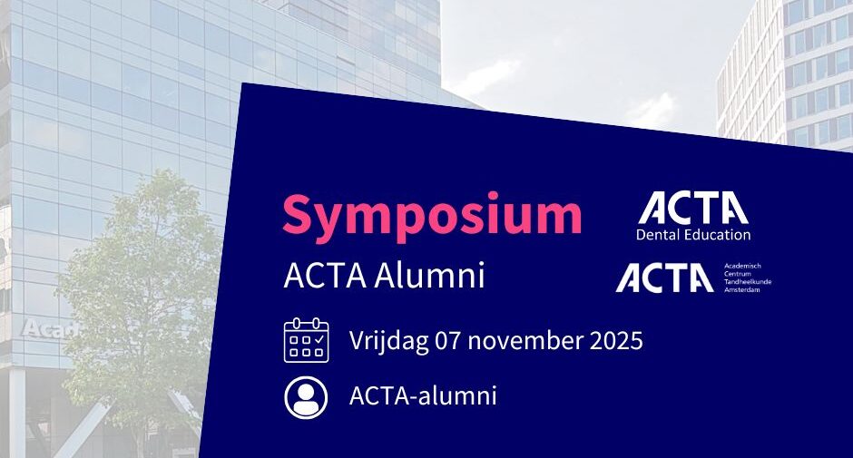 Wij nodigen u van harte uit voor het eerste alumnisymposium van ACTA. Mis deze unieke kans niet om samen met oud-studiegenoten, (oud-)docenten en collega’s een inspirerende middag te beleven op vertrouwde grond.